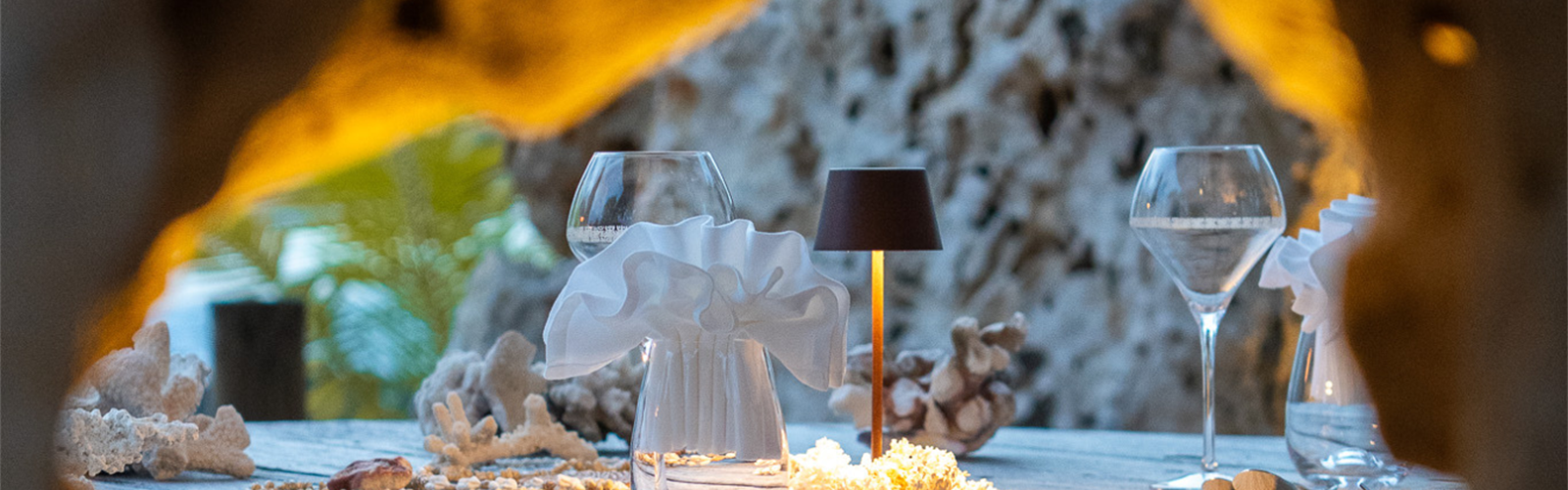 Dans une atmosphère élégamment décontractée, la cuisine met à l'honneur les poissons fraîchement pêchés dans le lagon de Tikehau, sublimés avec justesse et simplicité. Entre sable blond, lumière dorée et tables nichées à l'abri des roches, l'expérience se savoure comme une parenthèse rare.